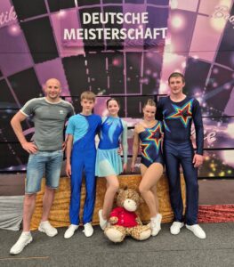 In der höchsten Tanzklasse, der A-Klasse, waren sechs Tanzpaare qualifiziert. Für den Saisonhöhepunkt hatten sich Johanna und Franz Rothballer zusammen mit Trainer Benni Federl die letzten Wochen intensiv vorbereitet. Nach einer soliden Leistung in der Fußtechnik mit einer neuen Choreografie lief das „Einwerfen“ für das Akrobatik Finale sehr gut. Die Beiden zeigten an erster Stelle eine neue Akrobatik und kombinierten den Strecksalto zur Grätsche mit einem Salto vorwärts. Leider war der Wurf nicht ganz flüssig und zog einiges an Abzug nach sich. Den Rest der Runde konnten die Sportler aber souverän abrufen und landeten in der Endabrechnung auf einem guten Platz 5 in einem sehr starken Feld von Nationalkaderpaaren.