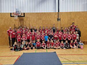Am Samstagmorgen begannen die Erwachsenen und Turnierpaare bereits um 10 Uhr mit einer ersten Trainingseinheit. Es waren auch drei externe Trainer aus Rosenheim und Speyer angereist, um den Tänzerinnen und Tänzern neue Impulse zu geben. Nach dem Mittagessen ab 13 Uhr stießen dann die nächste Welle an Nachwuchstänzern dazu und man leitete mit einem gemeinsamen Warmup das Abteilungswochenende ein! Ab 15 Uhr kamen dann auch noch alle restlichen Tänzerinnen und Tänzer dazu, so dass dann gut 80 Teilnehmer die Turnhalle füllten.