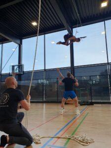 Während die kleinsten Rock’n‘Roller an einer neuen Choreografie für die Shows des kommenden Jahres übten, setzten die Turnierpaare eine gute Basis für die anstehende Turniersaison. Wann immer sich eine Lücke ergab, tobten sich die Kinder und Jugendlichen auf der für das Wochenende ausgeliehenen großen Airtrack-Matte aus.